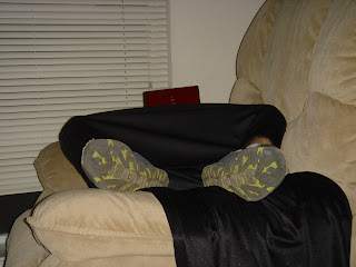 When Eli got home from trick or treating, he sat in the La-z-boy and played on his DS for a few minutes.