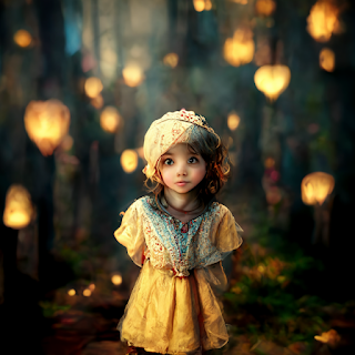 "Little girl in a fairy tale world, background ultra detailed, volumetric lighting."